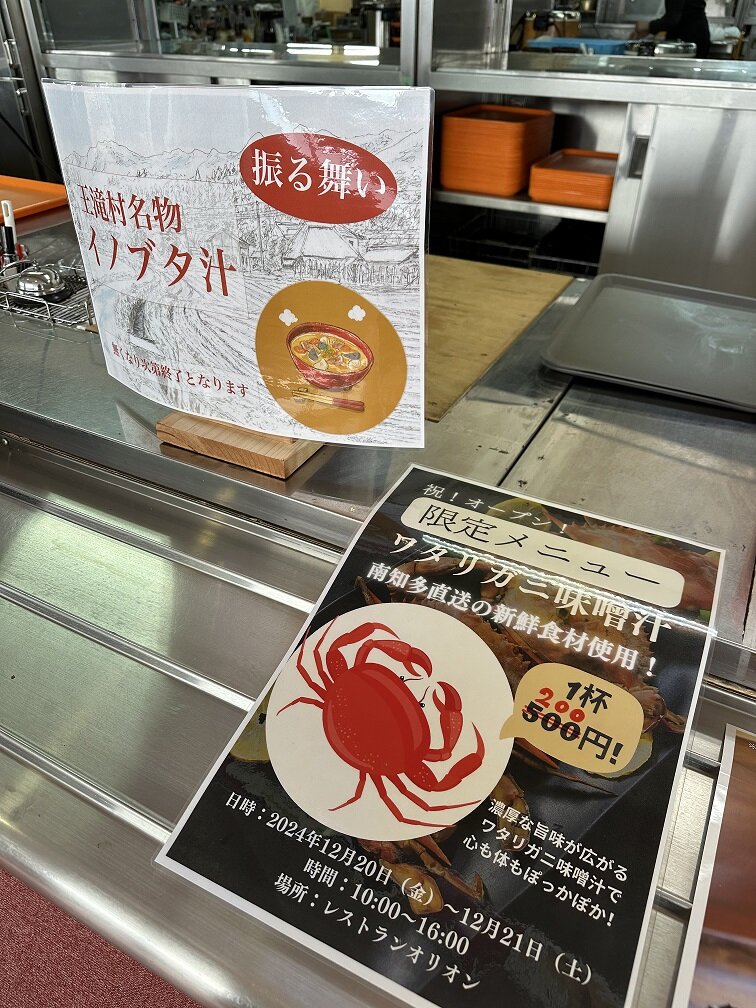 イノブタ汁の振る舞い!ワタリガニ汁は200円で提供!