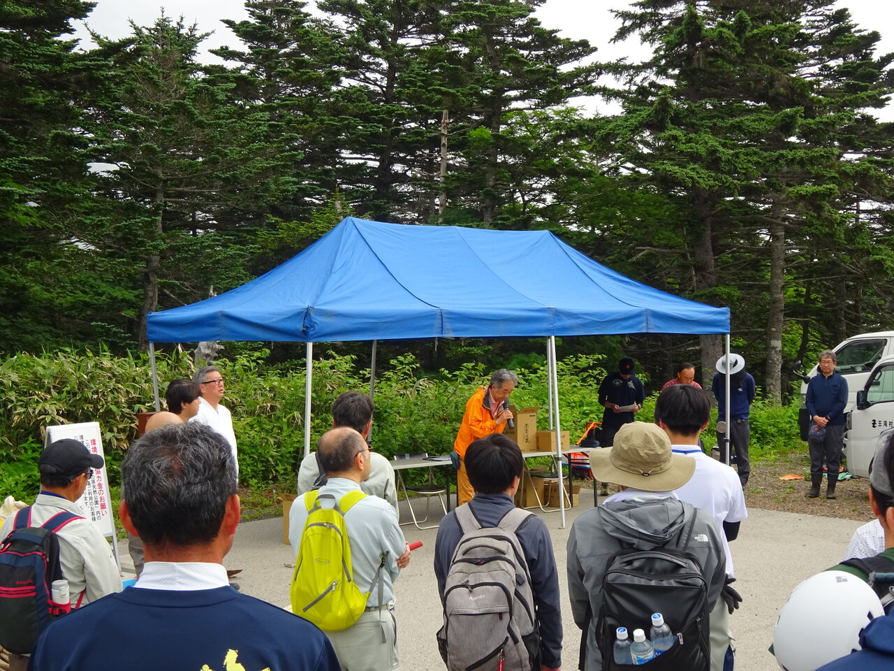 7月2日(水)、御嶽山登山道整備が王滝村・田の原と木曽町・黒沢口で行われました。心配されていた天気ですが、御嶽山が顔を出してくれましたょ