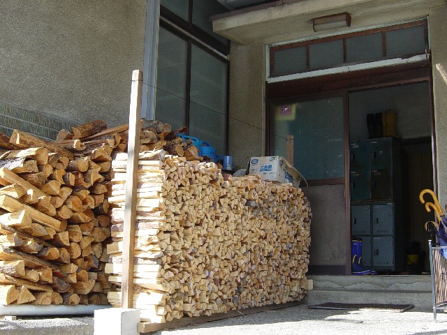 この薪は、昨年の「未来世紀へつなぐ緑バトン事業」で下流域の皆さんが薪割りをしていただいた物です。化石燃料に頼らないエコの取組みを皆さんも取り入れたらいかがでしょう。