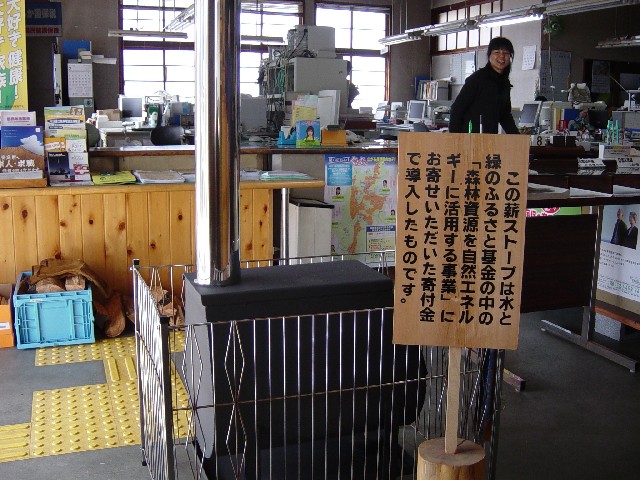 3d8aeb50.JPG役場の薪ストーブの設置費用(20万7千円)は、水と緑のふるさと基金の中の「自然エネルギーを活用する事業」にお寄せいただいた寄付金を活用しました。水と緑のふるさと基金は平成18年9月に創設され、森林整備など4つの事業に1300万円を超える寄付金が寄せられています。