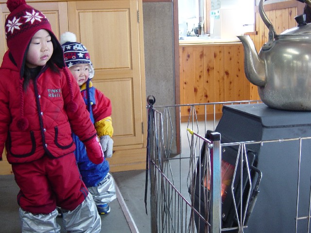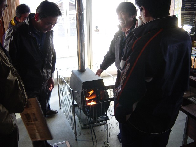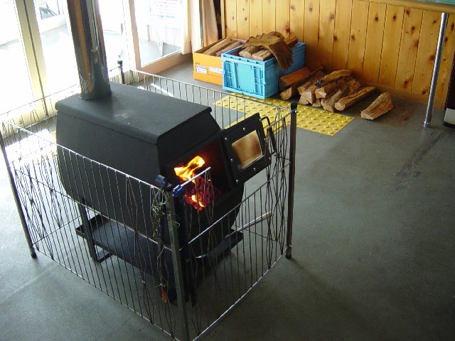 85488aa9.JPG環境にやさしい点と、間伐材の利用が森林資源の循環利用につながるものとして導入を決めました。ストーブは長野県内業者が製造したもので、火力の強いカラマツなどの針葉樹や廃材も燃やせる頑丈なものです。