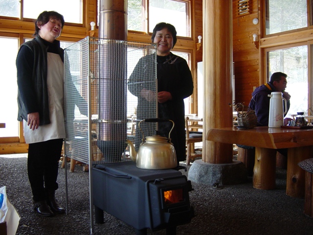 6053ac02.JPG指定管理者として運営している郷土料理店「ひだみ」にも、この冬、蒔ストーブ が導入されました。「ひだみ」とは王滝村の方言で「どんぐり」のことです。 「ひだみ」では、瀬戸さん(写真右)と田中さん(同左)が生み出した数々の「どんぐり料理」を味わうことができます。この日は試作料理を拝見しに伺ったのですが、おふたりからは蒔ストーブがとても暖かいことや、ストーブを活用した料理も考えていきたいとを話してくださいました。またお店の隣には御嶽山岳歴史文化会館が併設されていて御嶽山に関わる歴史や民俗考古資料などが展示されています。(御嶽神社が管理運営を行っています)