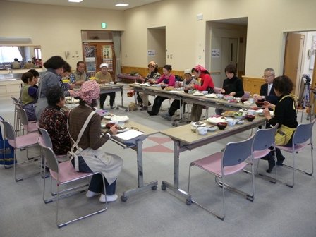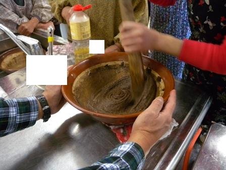 午前中、保健センターで「第1回王滝ごへいを作って食べる会」が開催され18人が参加しました。