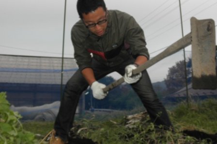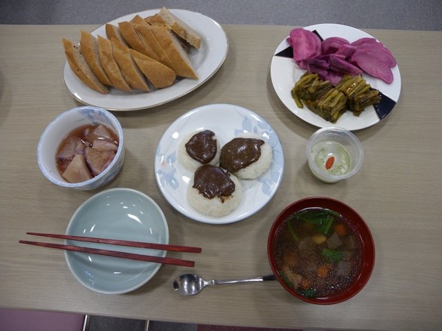 ガイアユースのみなさんは、今回収穫した野菜をたっぷり使った豚汁と、どんぐり餅を