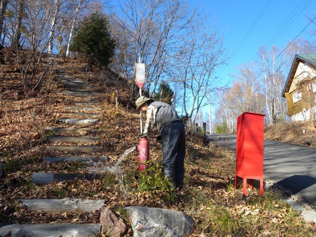 今日は、りんどう平の別荘地で消火栓の点検を行いました。