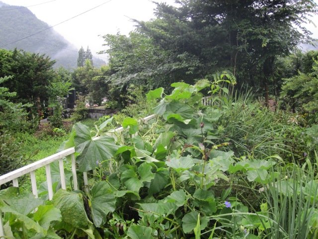 blogIMG_0312庭に植えていた夕顔が伸びて、柵の裏側で実をつけていたようです。