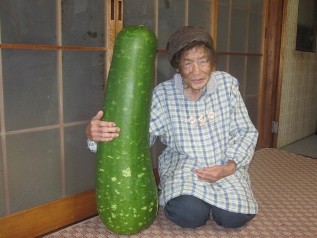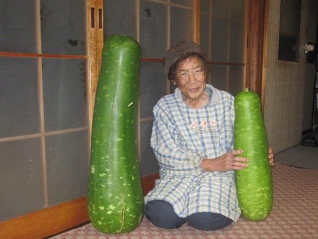 村民の方から「大きい夕顔がとれたから見においで」とご連絡をいただき