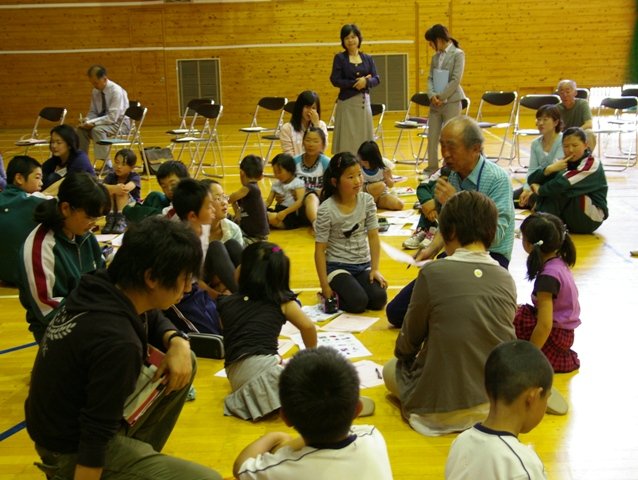 一本の樹木(人生のたとえ)を子どもから大人まで、みんなで育てよう」と、小中学生、