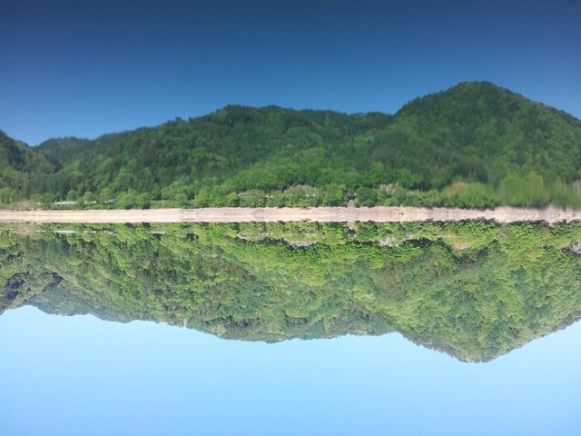 蛇が大きな口から舌をのばしているように見え、後ろの山の尾根が胴体のよう