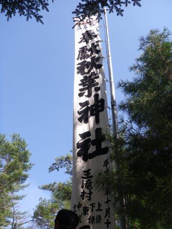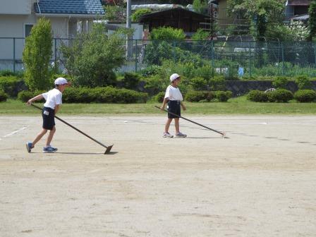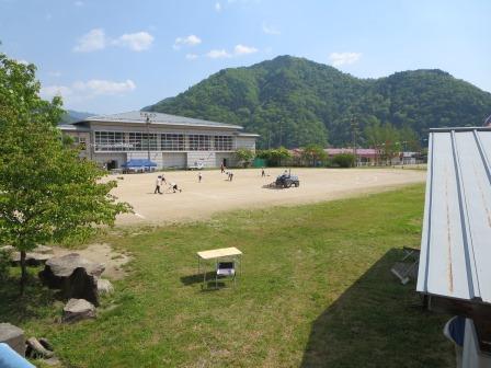 青空のもと王滝小中学校校庭では日曜日に開催される