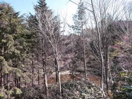 道路からダム側へ一段おりたところも