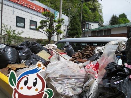 そのあと公民館前に集合して村道1号線と県道沿いのゴミ拾いをおこないました。