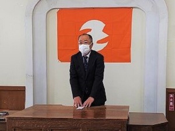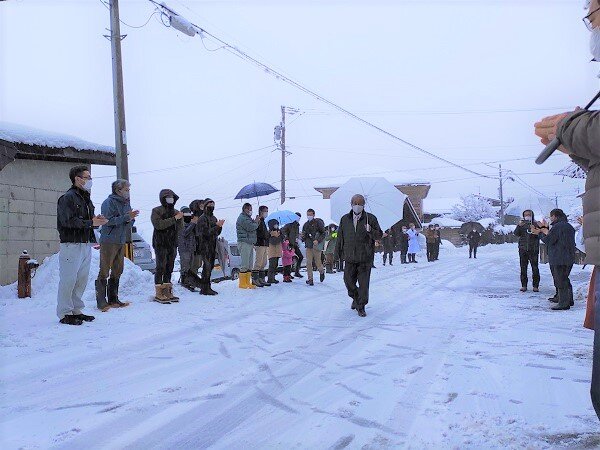 役場外では職員をはじめ、駆け付けた村民らが列をつくり、