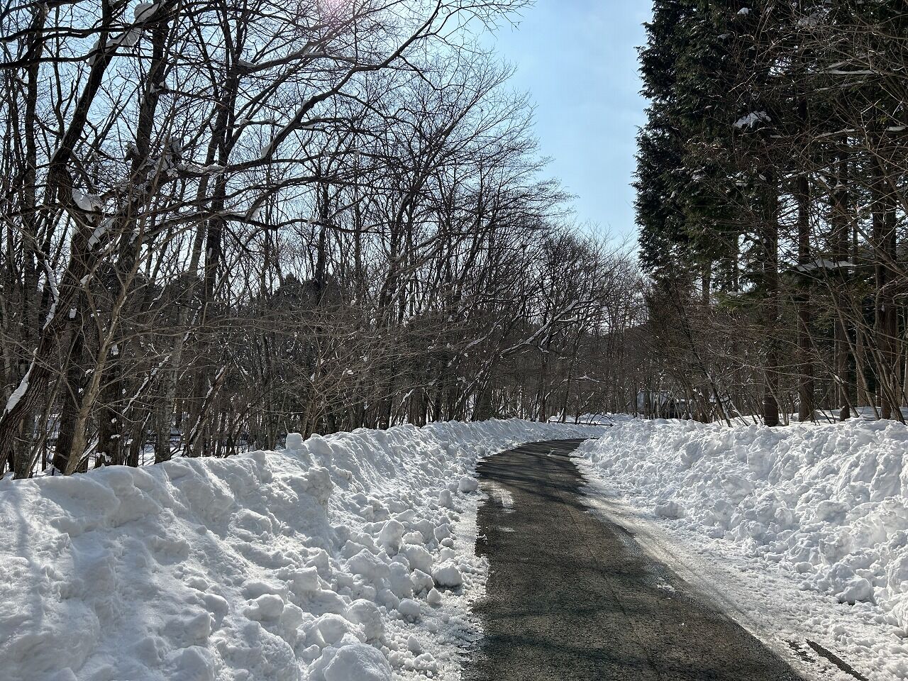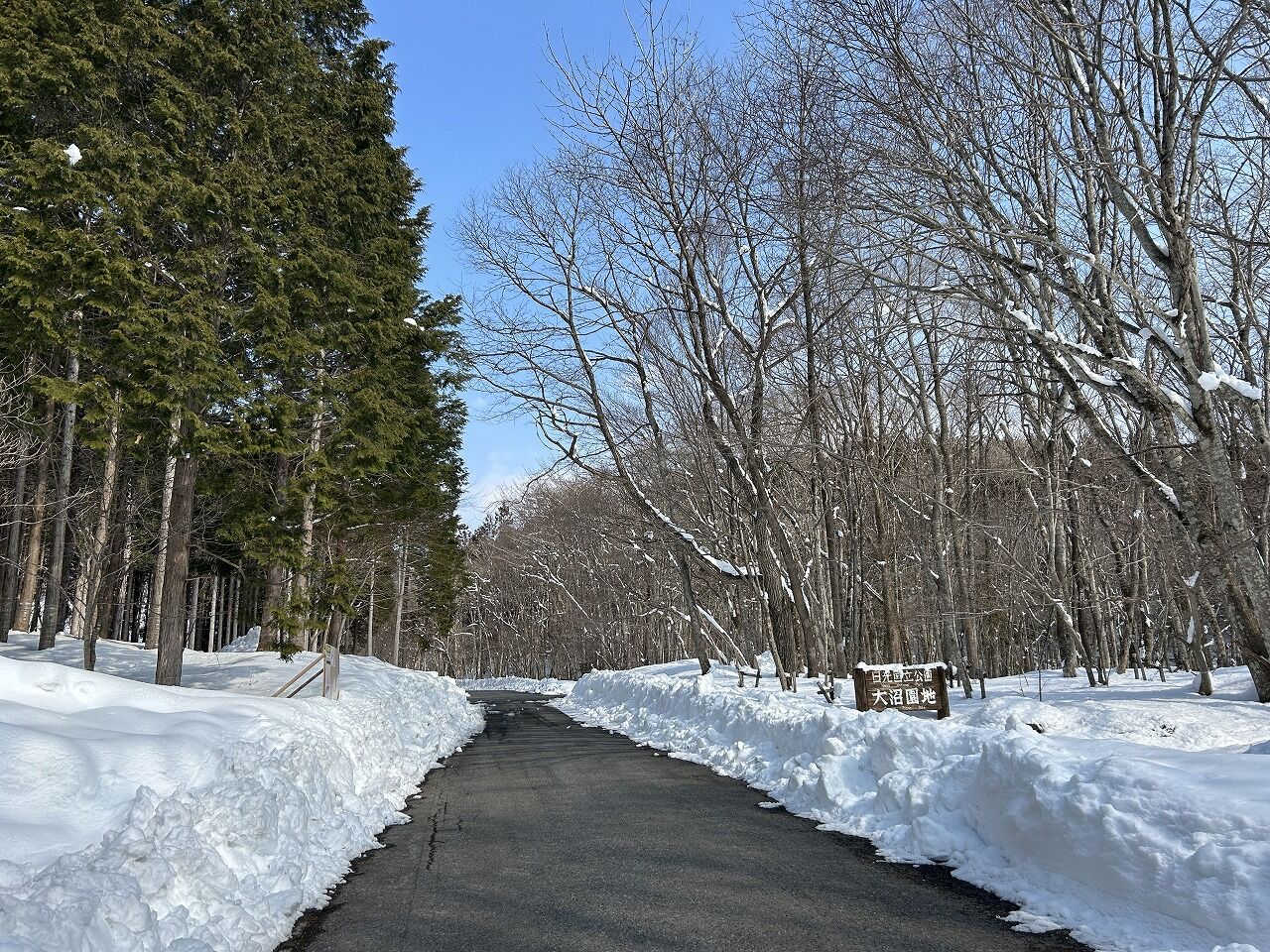 温泉街では先日降った雪もなくなりましたが、奥塩原地区の森はまだまだ雪に覆われています。