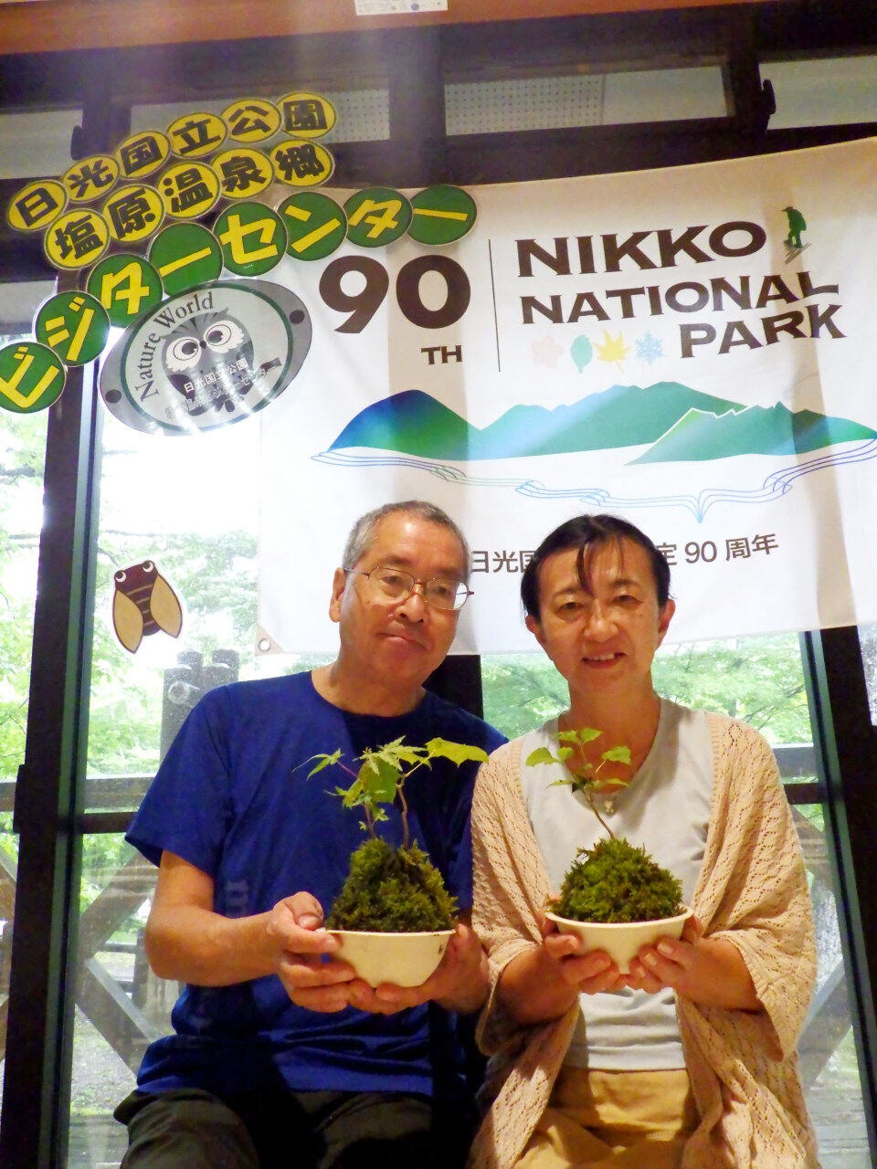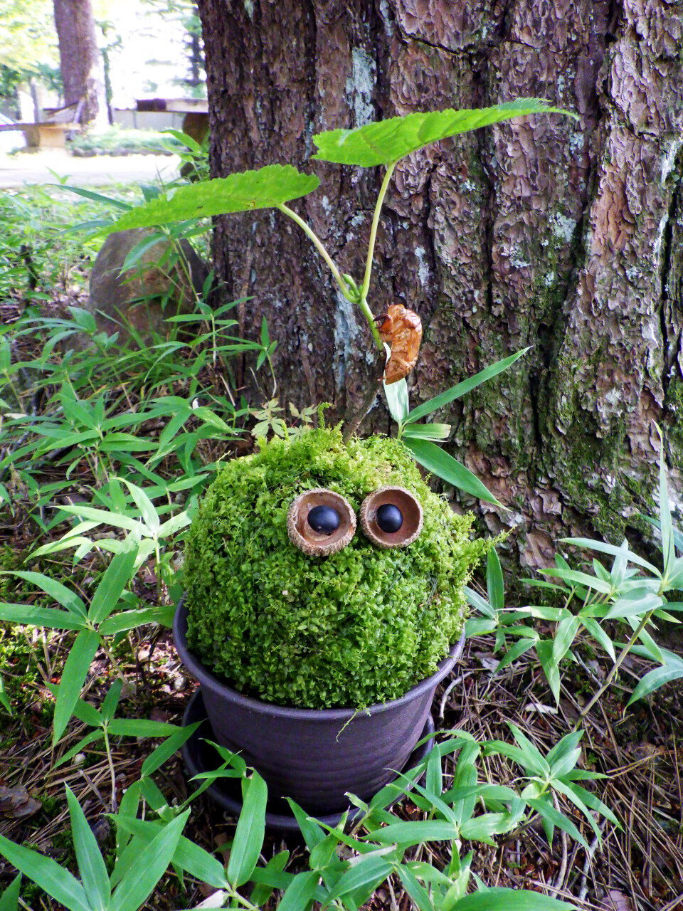 ここは塩原温泉ビジターセンターの森。まんまるコケ玉さんがまたやって来ましたよ。《プログラム散策ストーリーフォト》