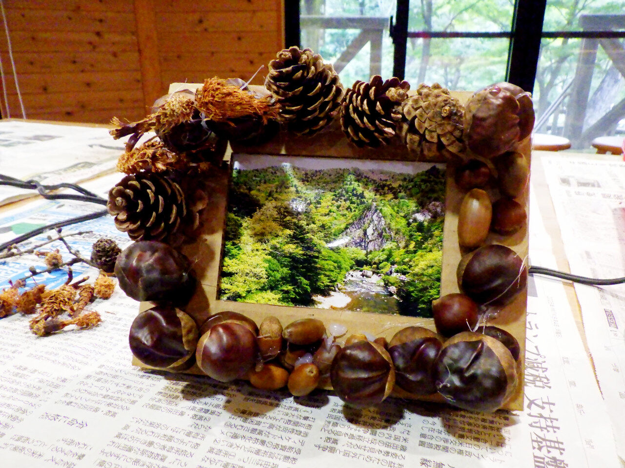 木の実のフォトフレームを作っているんだね! みんなそれぞれ個性的でいいね〜♪