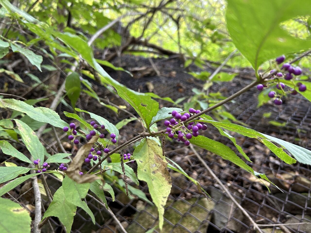 ムラサキシキブ、マツブサの果実。《フィールドフォト2 赤川渓谷線歩道》