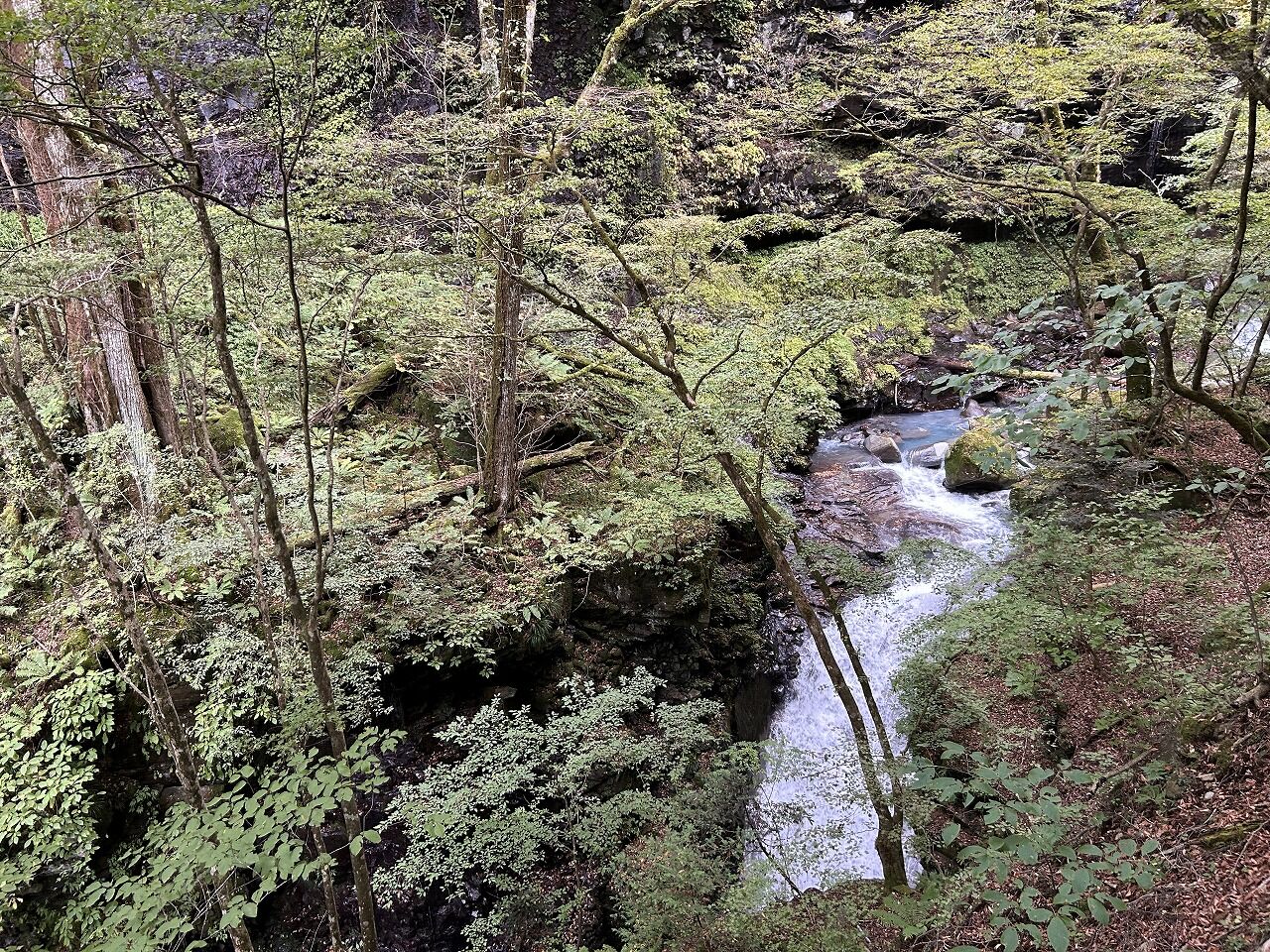 渓谷の森を見下ろせるのも、このルートの魅力のひとつです。さ、目線を変えて散策路を往復で戻ります。