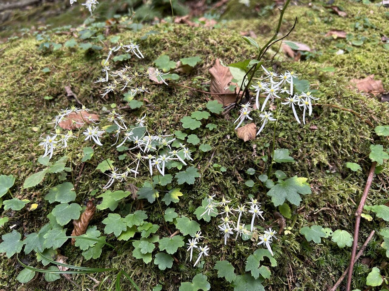 赤川渓谷線歩道の最上流部では、ダイモンジソウの花が出迎えてくれました。