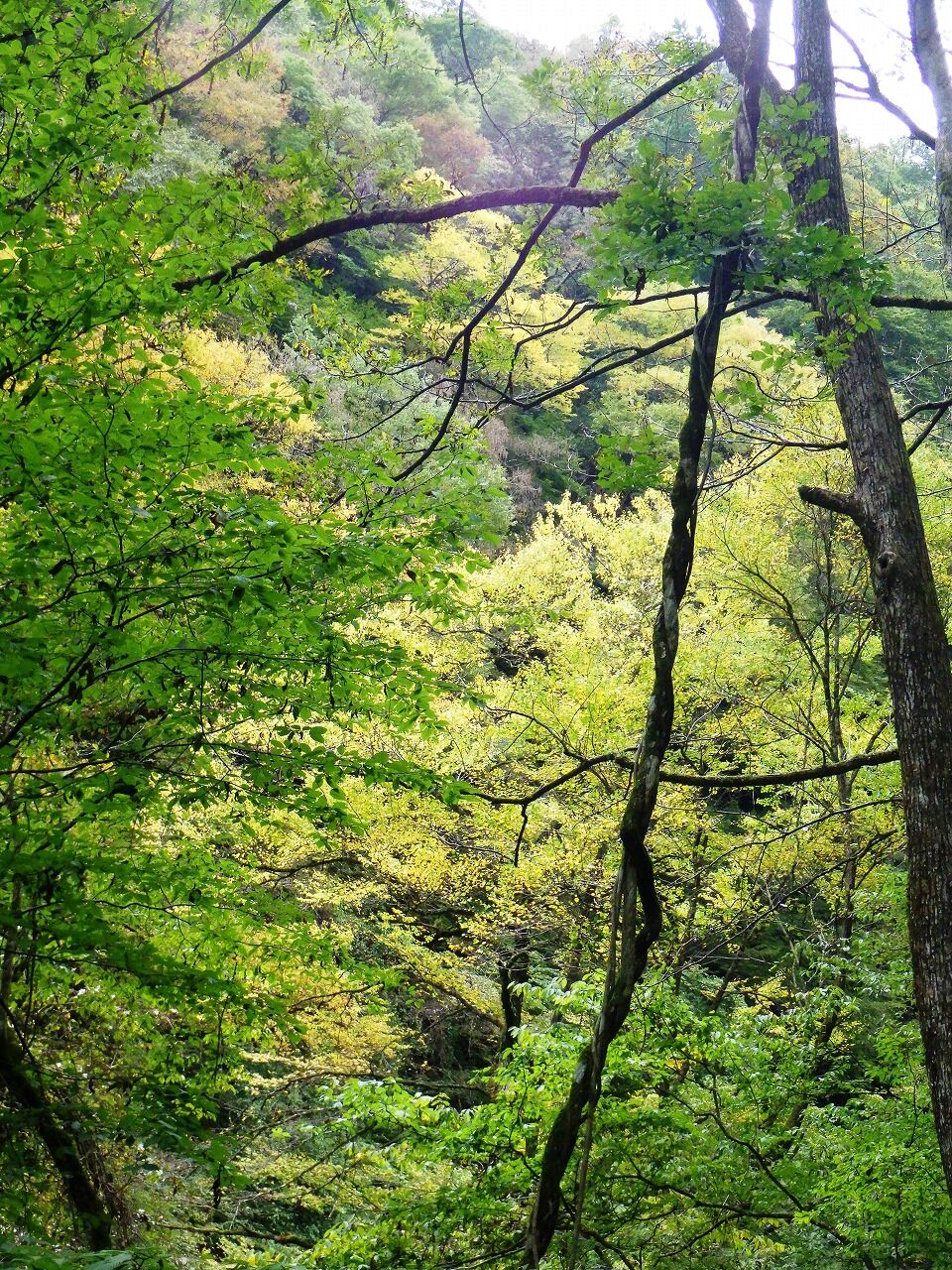 渓谷の森を見下ろせるのも、このルートの魅力のひとつです。