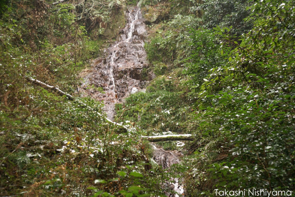 そこをたどって、雪中の滝を見上げる。