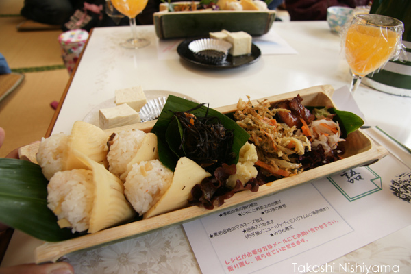 鯛めしを買って、春の陽気の中、お弁当ランチ。