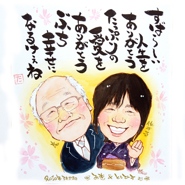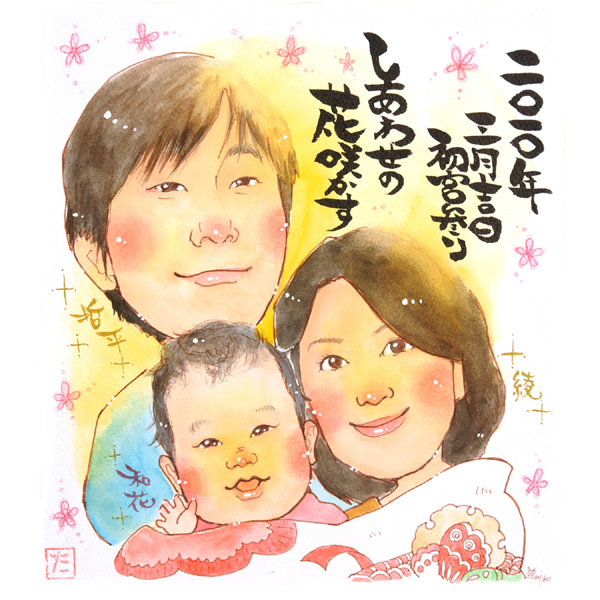 初宮参り似顔絵 結婚式 ご両親への贈答似顔絵