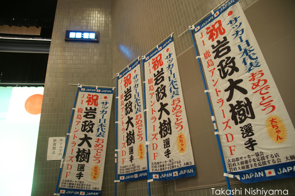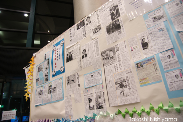 ホールには岩政大樹選手の活躍を伝える記事が貼られ、