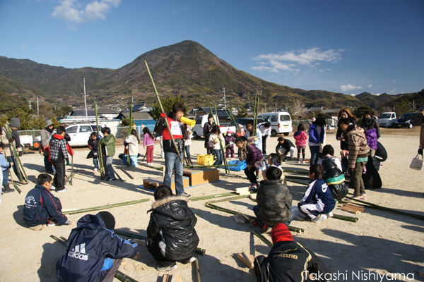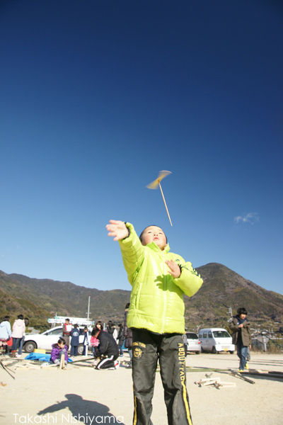 ひとつ、またひとつ、竹とんぼが大空へ飛び立つ。
