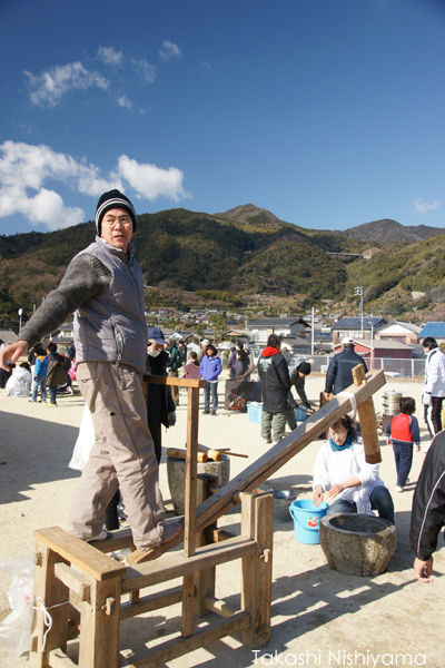 餅つきは【長尾八幡宮】の宮司さんが奮闘していた。
