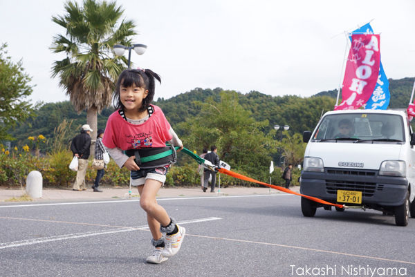 小さな子供が車1台を引っ張る姿は驚くばかり。