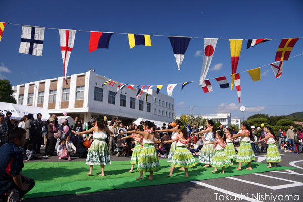 文化展示や、フラの披露など島らしいものが並ぶ。