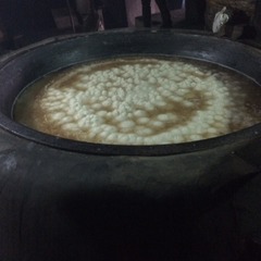 2m近くありそうな塩釜を見学。まさに塩の塊が出来上がるところでした。