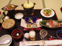 お宿は「のと楽」さんでした。天井の高い会場でゆったりとお夕食をいただきました。
