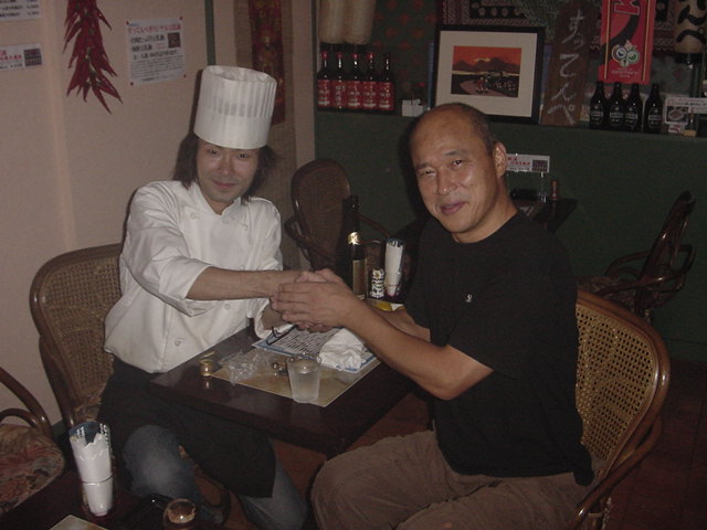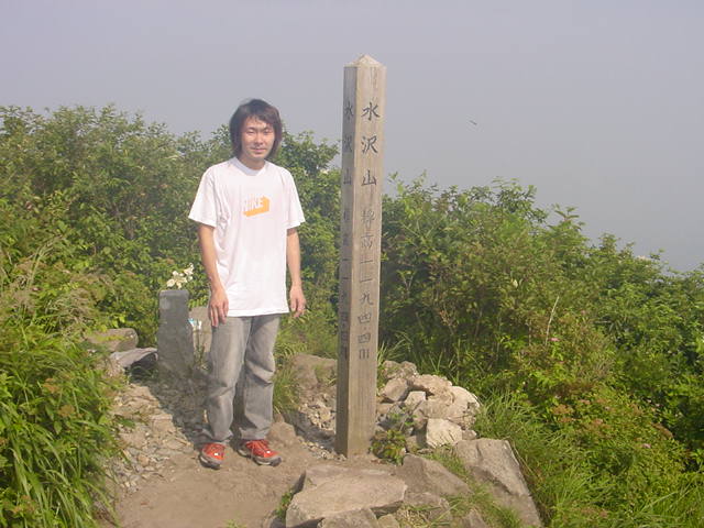 64b11883.JPG僕が前職で働いていた時の新井淳くん(大親友でマスターと同年代)とやっと連絡が取れ2,3年ぶりの再開!新井君は私が登山に夢中になっている事をブログで知り、一緒に山に登ろうと言うことになり早速出発!前橋市房丸から店主の車で移動、約40分位で榛名山の水沢観音に到着しました。それぞれ装備を確認し水沢観音の六角堂近辺から登山開始。いきなり急な階段がありその時点でヘトヘト、さらに急な林道をすすみちょうど中間地点の「お休み石」に到着、休んでいると沢山の登山家に「あとちょっとだから頑張ってね」とか「結構きついでしょ」などと声をかけられました。登山道もトレッキングしやすいように手作りの補助縄あり助かりました。新井君は中間地点でもうギブアップの様子で「先に行ってて」と声をかけられ、一人寂しく頂上(すってんぺん)めざし歩き続けました。大体30分位で頂上に到着!景色も最高で360度の視界は素晴らしく「登ってよかった」と満足感と達成感にあふれ、まだ頂上に到着しない新井君に悪いなと思いながら、用意しておいたワインを取り出し一人で飲み干しました。大体20分位新井君の頂上到着を待っていましたが全く来る様子もないので、再度360度の景色を拝み、已む無く下山しました。大体300メートル降りた所でヘトヘトになった新井君とすれ違い、もう一度頂上まで一緒に歩きました。今日は2回頂上に登って足はがくがく、膝は笑っておりました。新井君も頂上に登ることが出来、大変満足の様子でした。水沢山山頂からの展望は東に赤城山や日光白根、皇海、南は西上州の山々、八ヶ岳、奥秩父の山々、富士山、西北から東北方面は草津白根、岩菅、白砂、苗場、谷川連峰などが一望できます。キツイけど足腰を鍛えるには最高の山だと思います。(写真は感じの良い登山家の方に撮って頂きました。有難うございました。)