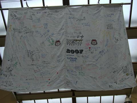 ザスパ草津 応援フラッグ♪前橋中央通りアーケードに掲げられた ザスパ草津サポーターさん達が書いた チームや選手に対する 応援フラッグ 皆の気持ちがこの寄せ書きフラッグに込められております! そして裏面には選手のサインが・・・ このフラッグを揚げるのも大変だったんだろうなぁ〜