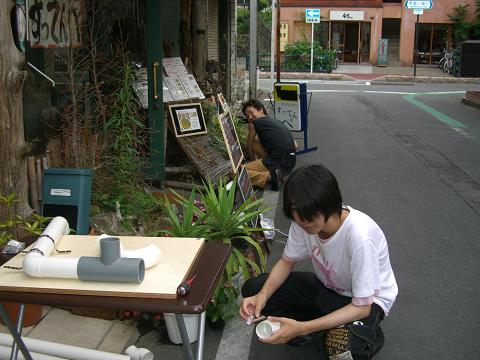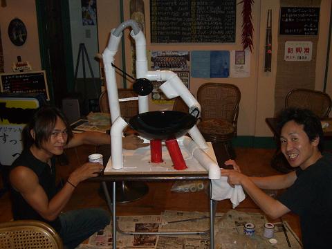 パイプアート♪ 七夕まつりの作品 大体イメージが湧いて来たため 今日から制作にかかる事に しかし前橋七夕まつりの出品のエントリーには間に合わ無いとの事で すってんぺだけでの七夕まつり作品製作 仮のタイトルは「パイプアート」 塩ビパイプを組み合わせての作品 参加者は悠介君 藤原さん そして私です 先日購入したパイプを切断して 皆で形を考え作り始めます どんな物ができるんだろぉ〜 やってみなきゃ分からない・・・