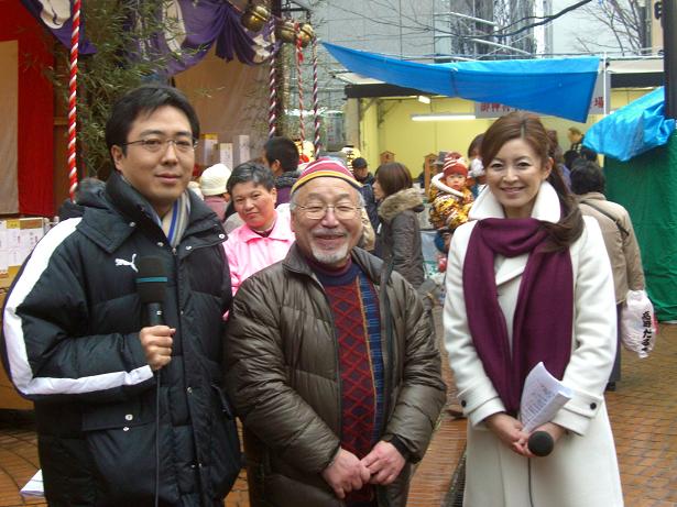 2009年01月09日 前橋初市まつり♪ 5 賑わう中央道り商店街私にとっての前橋初市まつりは4回目 なんだか年々賑わいが増しているように感じるのは私だけかなぁ 今年も凄い熱気です 前橋中心商店街が毎日2まつりの時のように賑わって欲しいなぁと思います いろいろ考えながら歩いていると・・・ 何とっ茂木紘一 先生に出会いました(写真下中央) 群馬テレビの生放送が始まる前に写真を撮らさせて頂きました 茂木紘一先生ありがとうございます 写真左は梨子田友和さん 写真右は渕上詩乃さん ギャラリー・オー・ツー にて茂木紘一先生の企画展が今年4月頃に開催されるとの事です 楽しみですねぇ