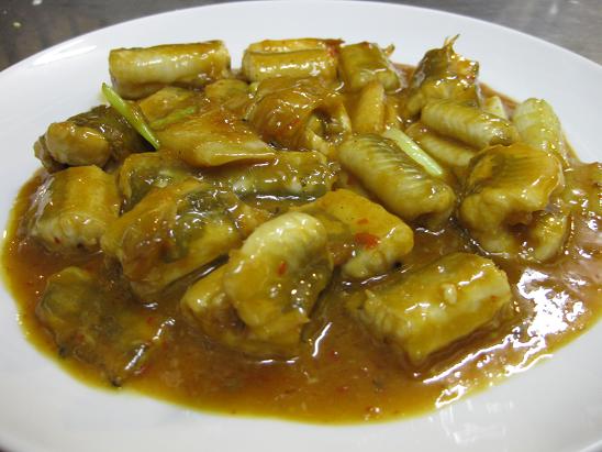 2009年08月29日 穴子の中華風炒め煮!! 5 穴子の中華風炒め煮今回ご紹介する料理はすってんぺの宴会料理で時々登場する一品は アナゴの中華風炒め煮 アナゴは中国語では星鰻(xing(1)man(2))といい真穴子はウナギに形は似ており 味はウナギより柔らかく癖がない 今回は大蒜や豆板醤や生姜等を使い 穴子はダイナミックにぶつ切りにし炒め煮にしました とってもジューシーで美味しい一品ですよ 是非2お試し下さいね
