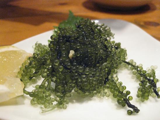 海ぶどう先日沖縄食堂ちゃんぷる亭さんの社長さんとお会いできた事もあり(凄く勉強になりました。有難うございます。) 今日の夕食は個人的にハマッテいる沖縄料理(・∀・)つ 今回で8回目の突撃です 最初のオーダーはやっぱりオリオンビールと私の大好物別名「海のグリーンキャビア」と呼ばれる海ぶどう そしてゴーヤチャンプルー(前回は3人前を一人で完食) ミミガー 島らっきょう やぎ刺し 実際に沖縄でも食べた三点塩辛豆腐などなどをオーダー 何を食べても ちびらしくまーさい ですね いつも美味しい料理有難うございます ご馳走様でした。