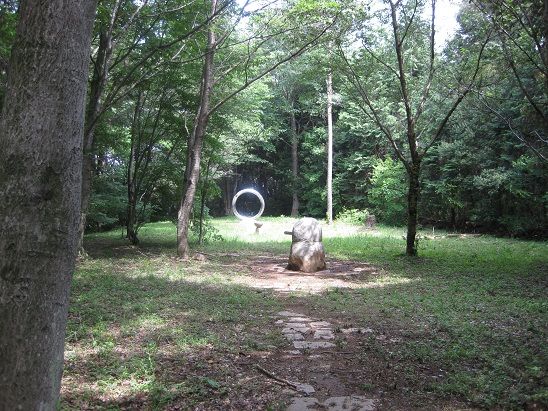 愛宕神社の裏の階段の途中を少し入った所の岩の上には、天狗の修行の地と言われる 石尊があります(写真左上)、そして少し下ると天狗の広場(写真右上)に出ます。天狗の顔をイメージした石(天狗の力石)や、丸い輪っかのモニュメント(天狗の輪)。天狗の力石は鼻の部分?を持つとぐるぐる動かす事ができます。再び登り巴川源流橋を通り、野鳥の広場、天狗池など・・見所沢山