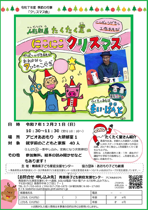 「にんぎょうげき屋たくたく堂のにこにこクリスマス」。