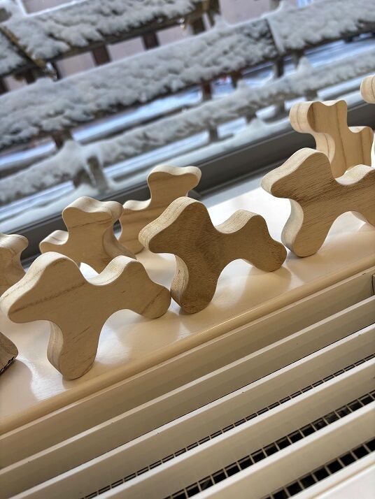 また、冬になったのでカエルのおもちゃには冬眠してもらって、かわりにワンコの積木を出しました。