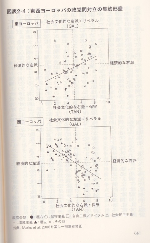 一方、排外主義と民主主義を重要だと考えるかどうかの関係を見ると、日本を含めて多くの国で関係ないか、カナダやドイツやフィンランドでは負の相関となっています。一方、ラトビアは正の相関になっています(136p図表5−2参照)。これは民主化直後にロシア語系住民の権利を抑圧する政策をとったことと関連があるのかもしれません。