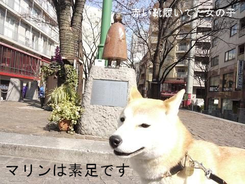 麻布十番商店街の中央にある< 赤い靴はいた女の子 >の像です。 横浜や北海道にも像がありますよね。