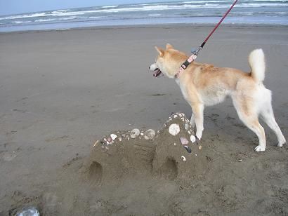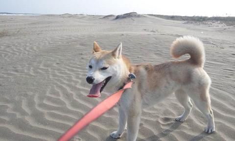 久しぶりの本須賀海岸でのお散歩なので、マリンは大興奮です!