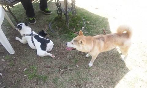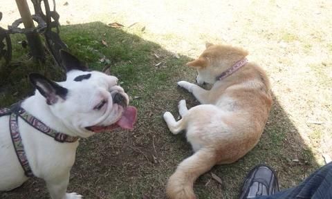 陽射しが強くて、少々バテ気味の2匹は、日陰でまったりと過ごしました。