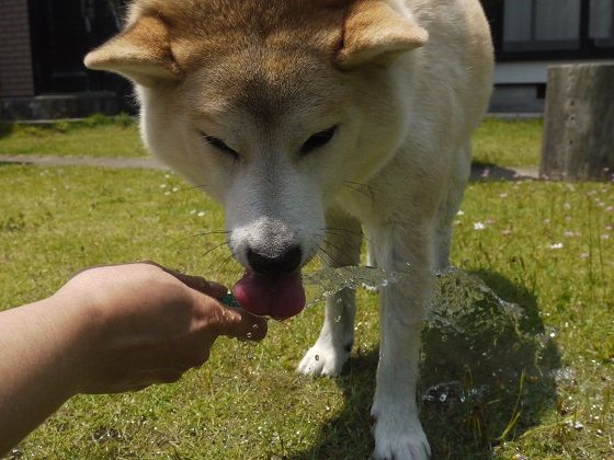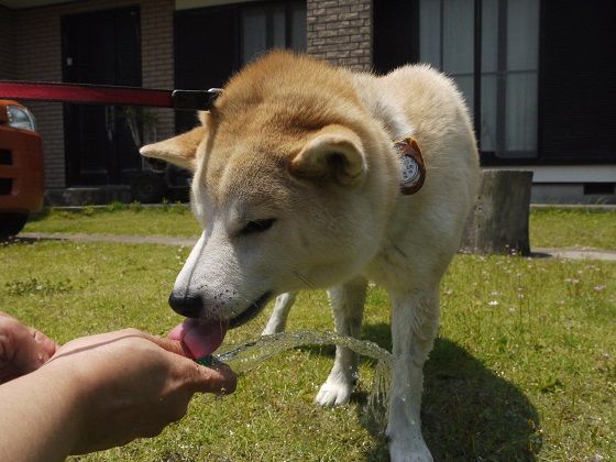 まずは、前足から。 ついでに喉の渇きも癒さないとね 💛
