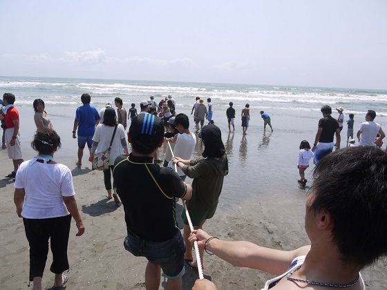 おつかれさまでしたー! 私も初体験の地曳き網漁。 いい汗かいたわぁー。