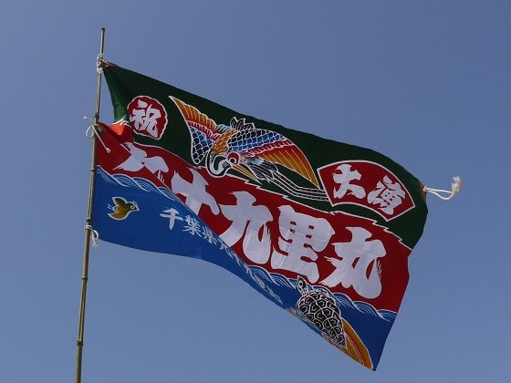 大漁旗が、とっても気持ちよさそうに、なびいています。